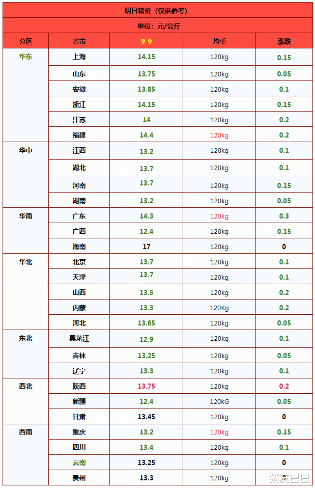 从最新消息了解,受供需变化,预计,9月9日,外三元标猪报价在13.62元/公斤,后市关注购销情绪的变化!对此,大家认为接下来猪价将如何发展呢?