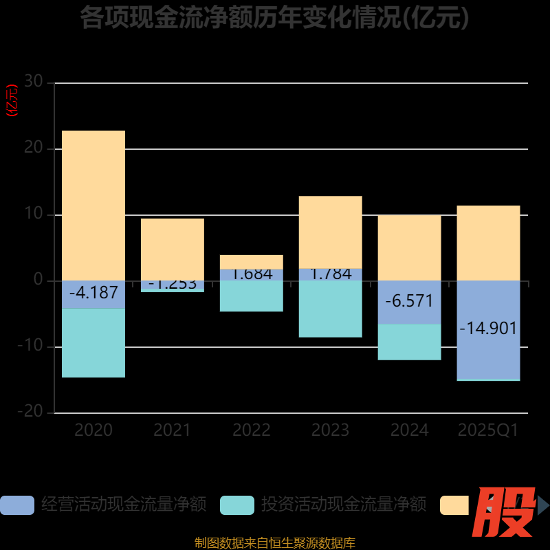 截至2025年一季度末,公司经营活动现金流净额为-14.9亿元,同比减少3.11亿元;筹资活动现金流净额11.35亿元快牛策略,同比增加3.79亿元;投资活动现金流净额-3244.56万元,上年同期为-9084.6万元。
