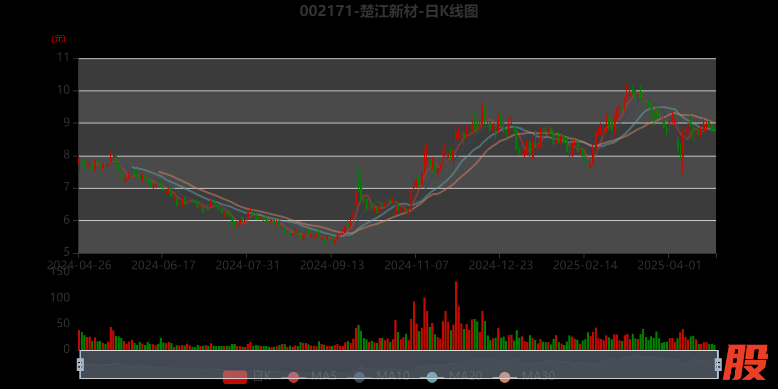 以4月25日收盘价计算,楚江新材目前市盈率(TTM)约为51.13倍,市净率(LF)约1.72倍,市销率(TTM)约0.24倍。