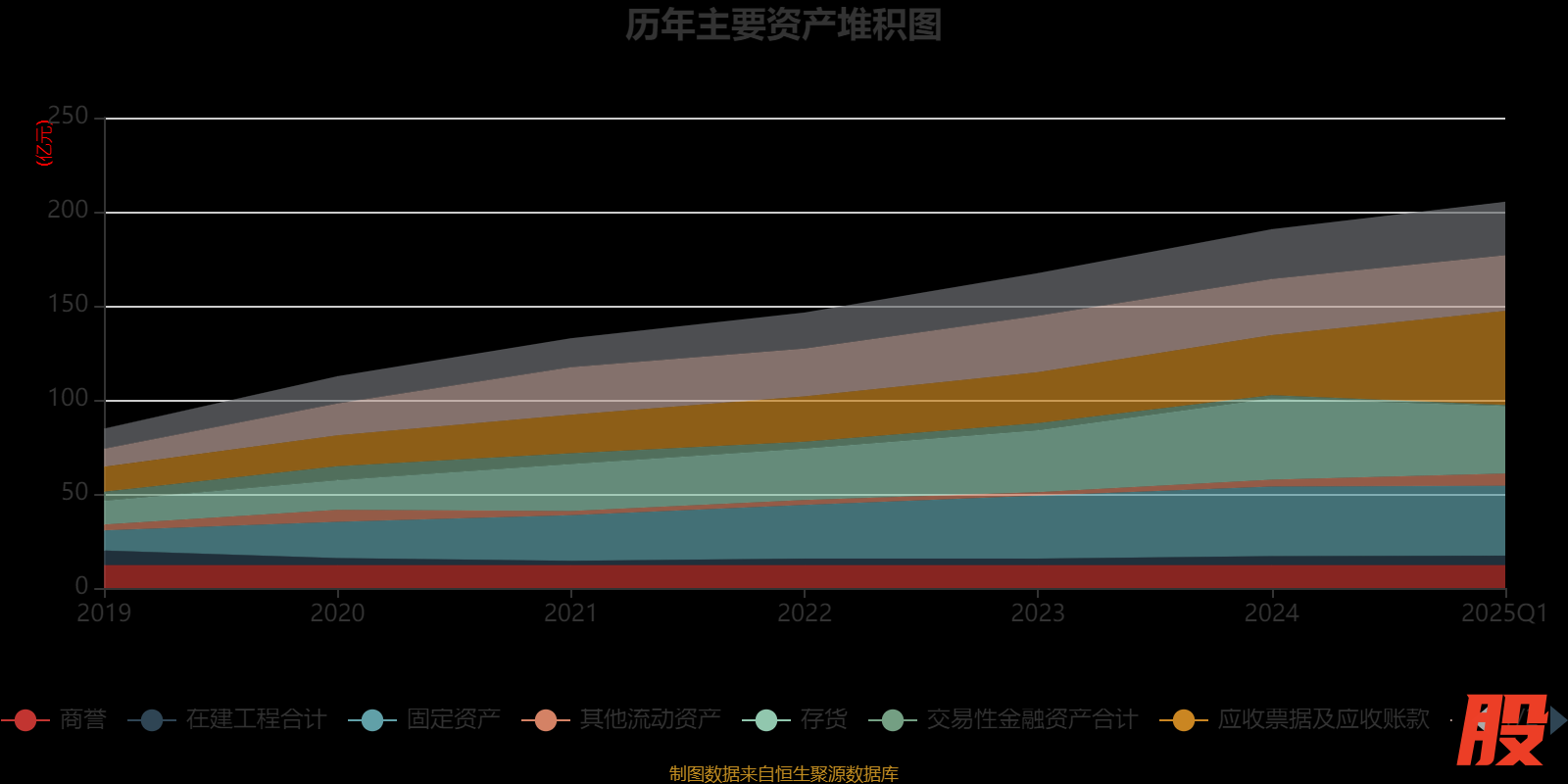 资产重大变化方面,截至2025年一季度末,公司应收票据及应收账款较上年末增加56.31%,占公司总资产比重上升7.58个百分点;存货较上年末减少16.75%,占公司总资产比重下降5.15个百分点;固定资产较上年末增加0.7%,占公司总资产比重下降1.25个百分点;其他流动资产较上年末增加75.59%,占公司总资产比重上升1.21个百分点。